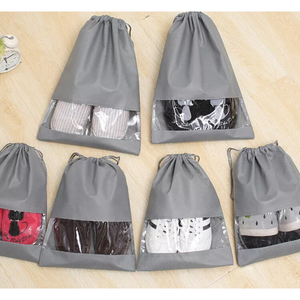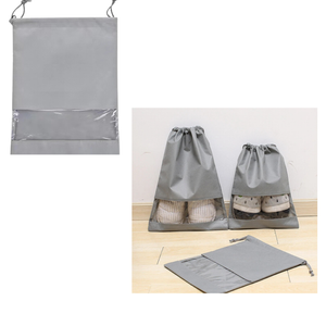 Durable non-woven drawstring shoe bag perfect for travel, sports, or storage use. Designed to fit one pair, it features a transparent window for easy identification and a dustproof and breathable build for optimal protection.