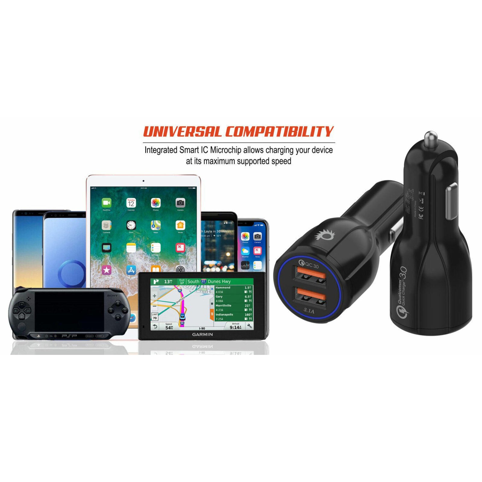 • Featuring a dual QC3.0 USB ports for efficiency, the power of dual