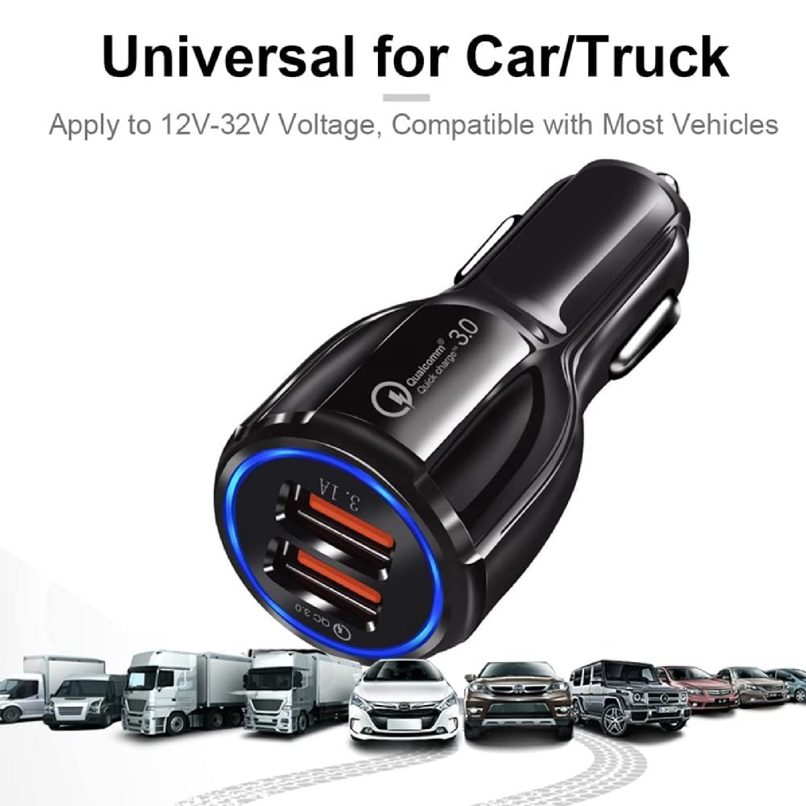 Fast Dual Port Car Charger 3.1A USB Quick Charger Qualcomm QC3.0 Lighter Socket