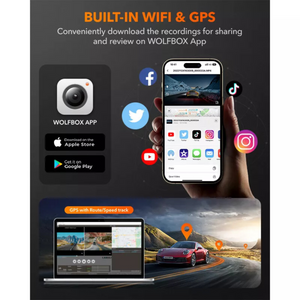 • Built-in WiFi & GPS: Review and manage recordings easily via Wolfbox app; track route, speed, and travel data.
