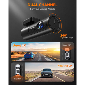 • 4K UHD Front + 1080P Rear: Wide 170° front and 150° rear view ensures clear, panoramic road coverage with minimal blind spots.