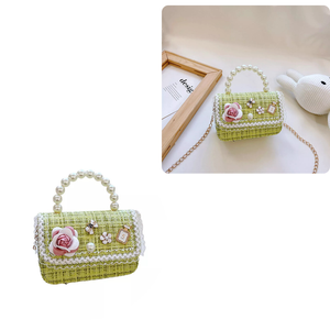 ELEGANT & COLOURFUL DESIGN: This charming princess handbag features a pearl handle and floral embellishments, offering a stylish and functional accessory for young girls. Perfect for daily outings, dress-ups, or special occasions.