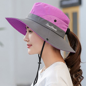Hat Sun Protect Visor Summer Beach Cap Women Wide Brim Ponytail Anti UV Purple