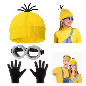 Hats for Adult Yellow Beanie 3 PCS Minions Steampunk Goggles Glasses