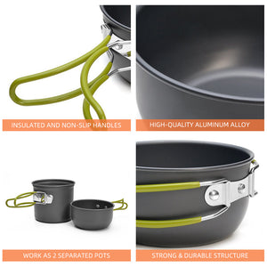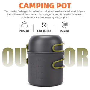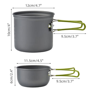 ALL-IN-ONE CAMPING COOKWARE SET: This Outdoor Portable Camping Cookware Set is designed for outdoor enthusiasts, providing all the essential tools needed for cooking during camping, hiking, or backpacking adventures.