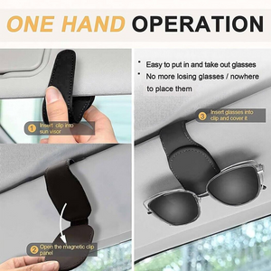 Magnetic Leather Car Sun Visor Clip - Glasses/Sunglasses, Card & Ticket Holder