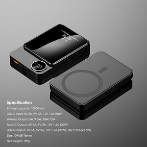 MAGNETIC & FAST CHARGING: This 10000mAh Magsafe Magnetic Power Bank offers wireless fast charging for iPhone 15/14/13/12/11 series. Its compact design ensures convenient on-the-go power replenishment.
