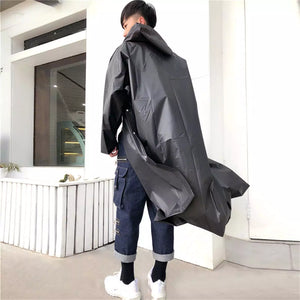 Mens Womens Long Hooded Raincoat Black Waterproof Jacket EVA Rainwear