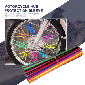 These covers are designed for your dirt bikes front and rear spokes, guaranteeing durability and a perfect fit. They prevent vibrations, offer protection, and are easily installed and trimmed. Each set includes 72 pieces, suitable for 18 to 21-inch wheels, with adjustable trimming for smaller sizes.