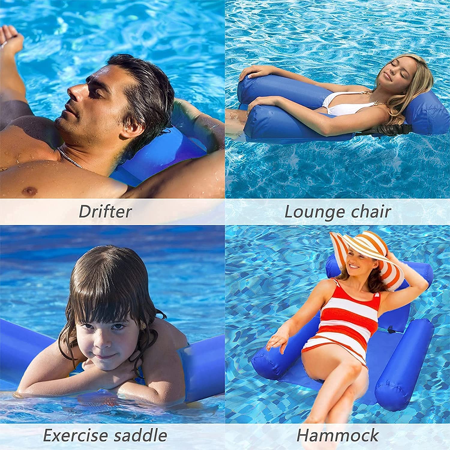 FLOAT IN COMFORT: This Inflatable Water Hammock Pool Lounge is perfect for drifting across calm waters. With a relaxing lounge design and durable PVC build, it provides a comfortable floating experience for your pool, lake or beach days.