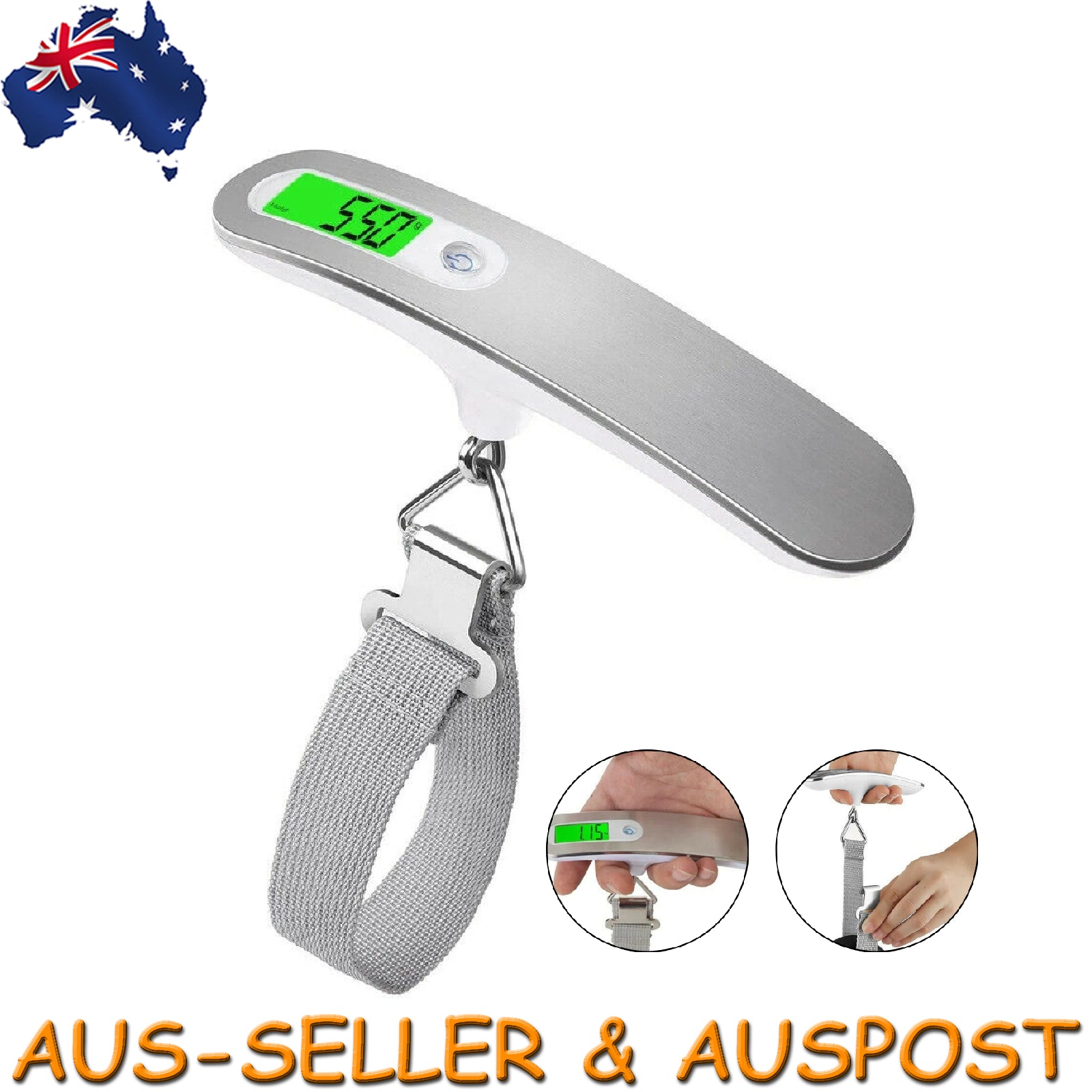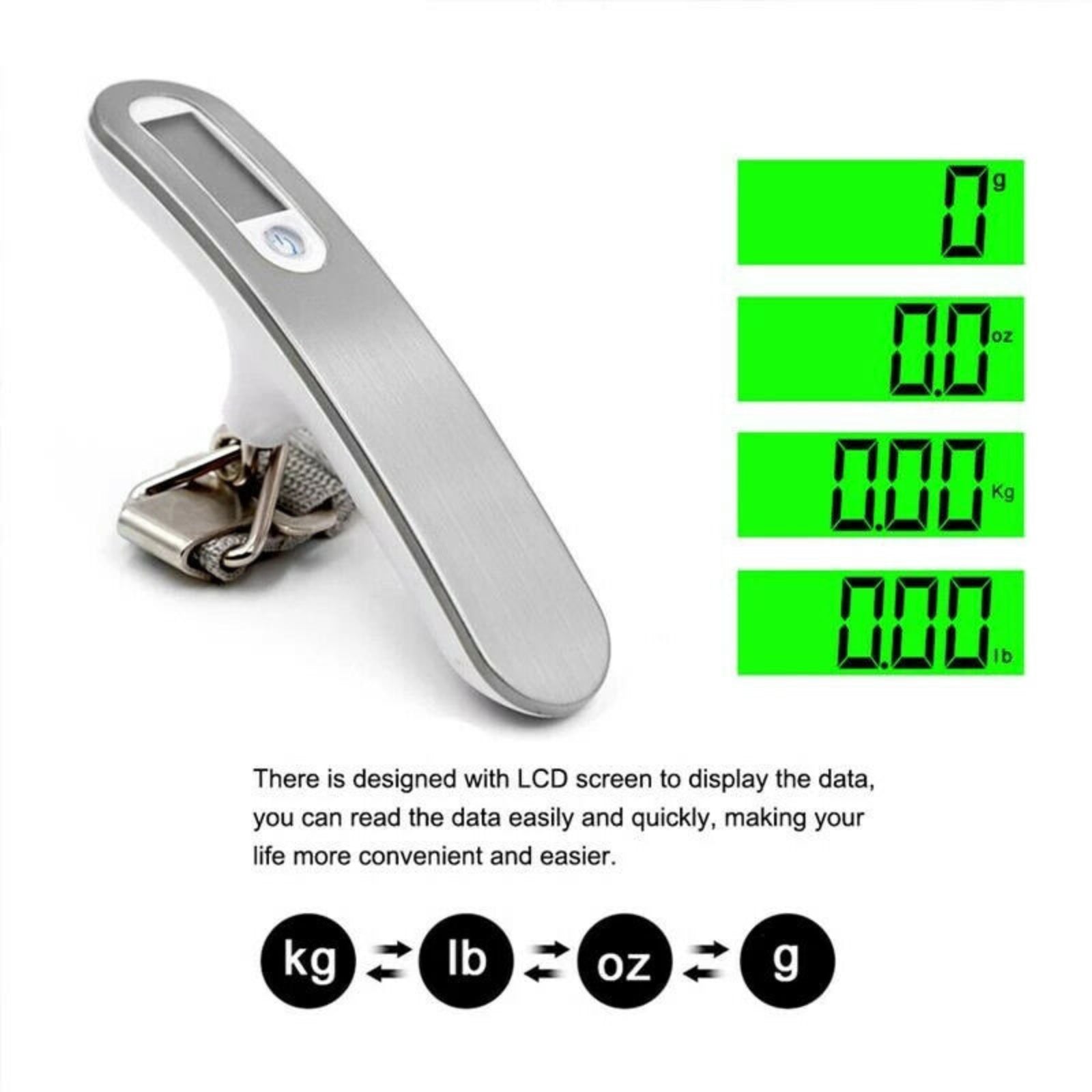 1x Digital Electronic Luggage Weighing Scale plus Strap - Silver