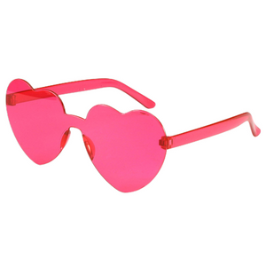 Rose Red Clear Lens Rimless Festival Glasses Love Heart Shape Sunglasses