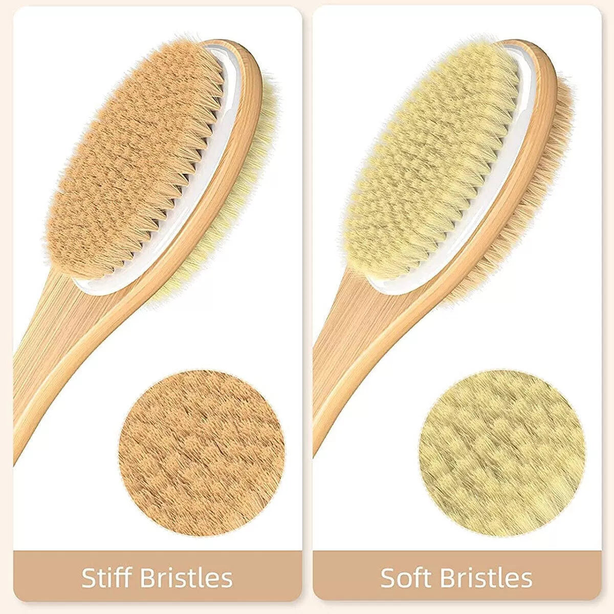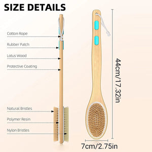 DOUBLE-SIDED BAMBOO BODY BRUSH: Crafted from premium bamboo wood with dual-sided bristles for gentle and deep exfoliation. Its long handle design ensures easy reach to your back, shoulders, and legs for a complete cleansing experience.