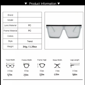 Silver Men Ladies Shade Mirror Women Fashion Oversized Square Sunglasses