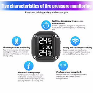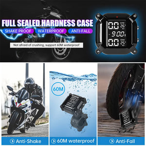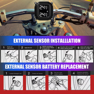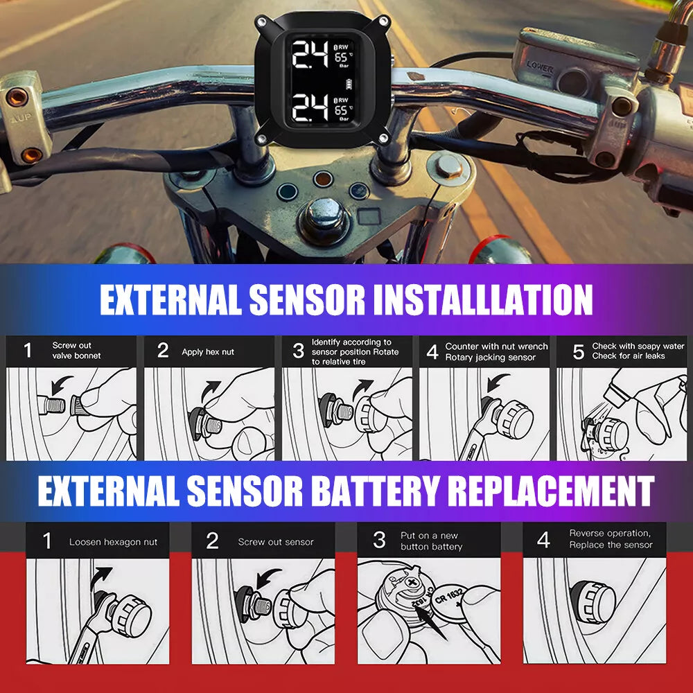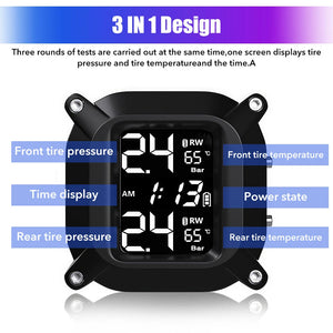 Tire Pressure Monitor System Wireless Motorcycle TPMS 2 External Sensors