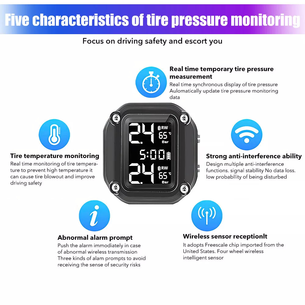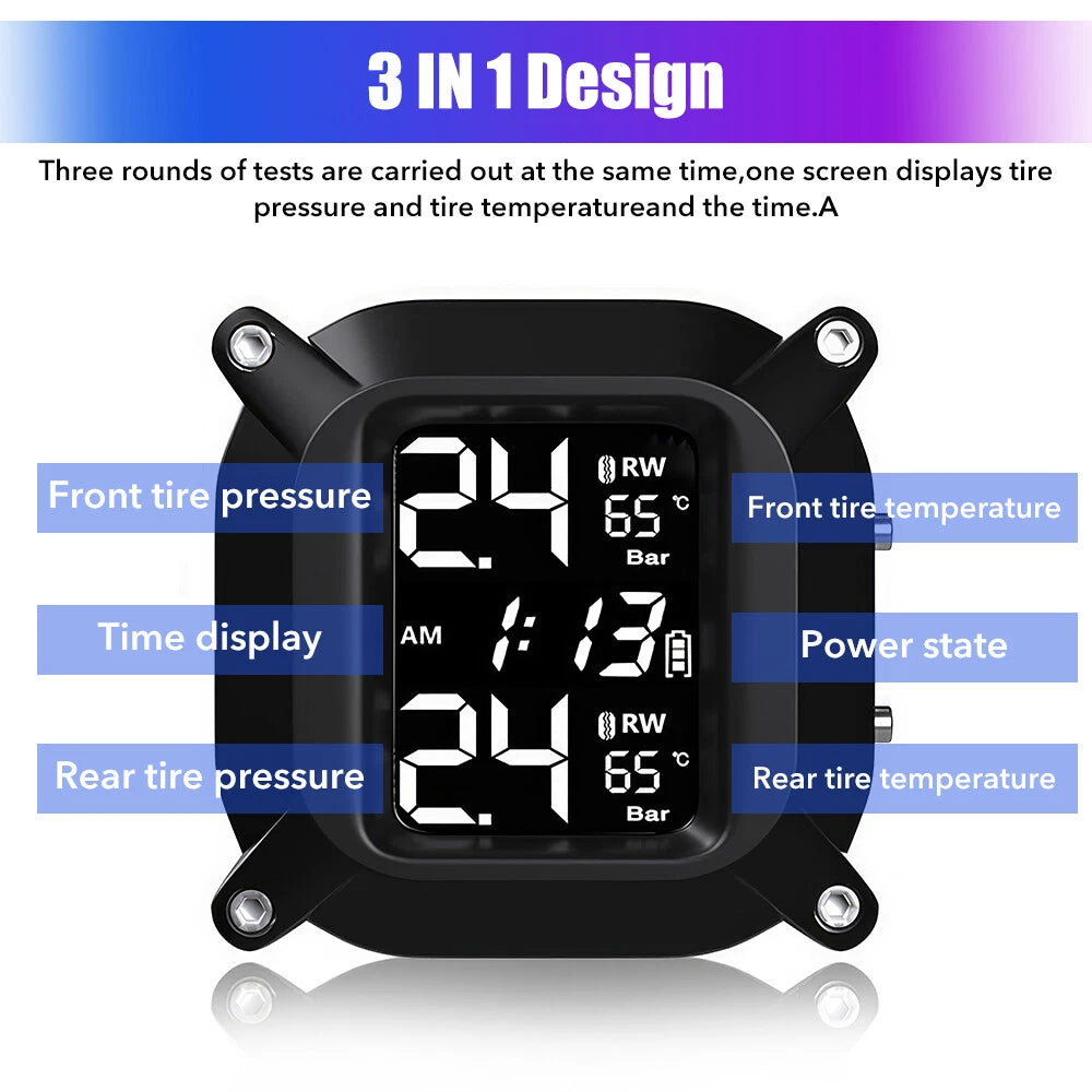Real-Time Tyre Monitoring: This Wireless TPMS System delivers real-time tyre pressure & temperature alerts, enhancing rider safety and reducing tyre wear for motorcycles.