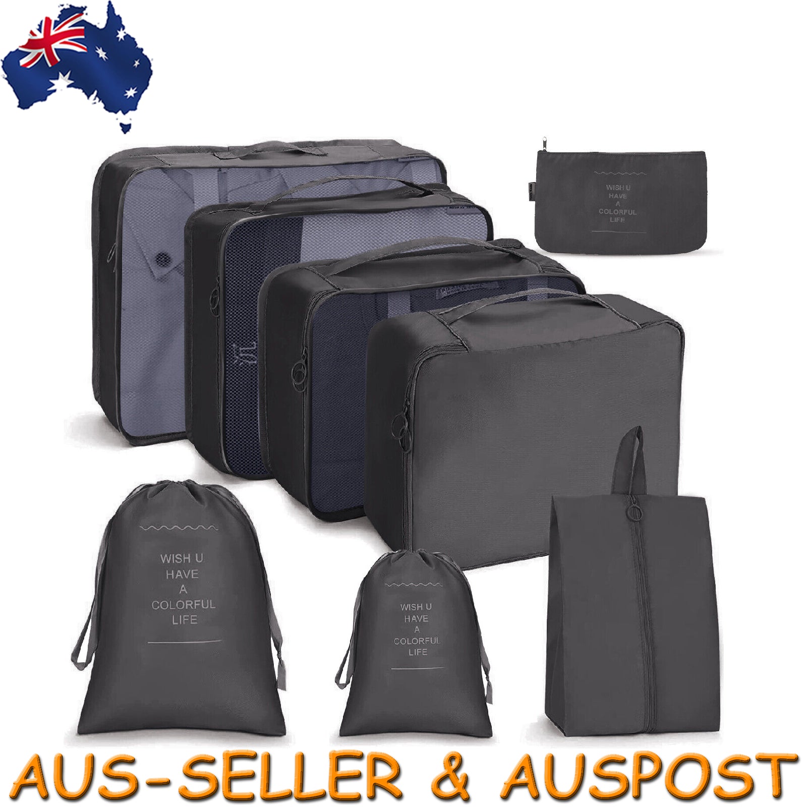 Travel Pouches Luggage Organiser Clothes Suitcase Storage Bag Packing Cubes 8pcs
