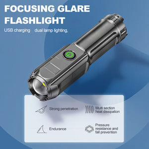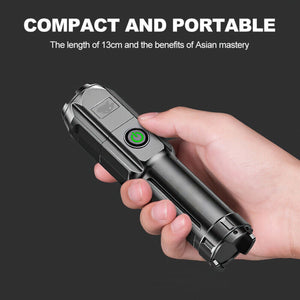 Illuminate Your Adventures with Ease! Experience the convenience of this rechargeable flashlight. Compact, bright, and ready for any adventure. With a built-in lithium battery, it's always ready to shine, providing reliable light whenever you need it most.