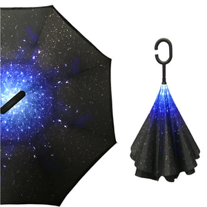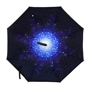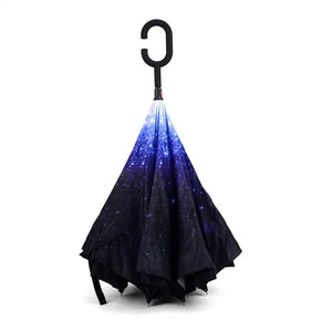 Windproof Double Layer Umbrella Reverse C-handle Upside Down Inverted Starry Sky
