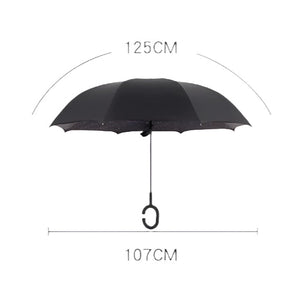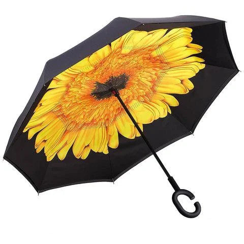 Windproof Double Layer Umbrella Reverse C-handle Upside Down Inverted Sunflower