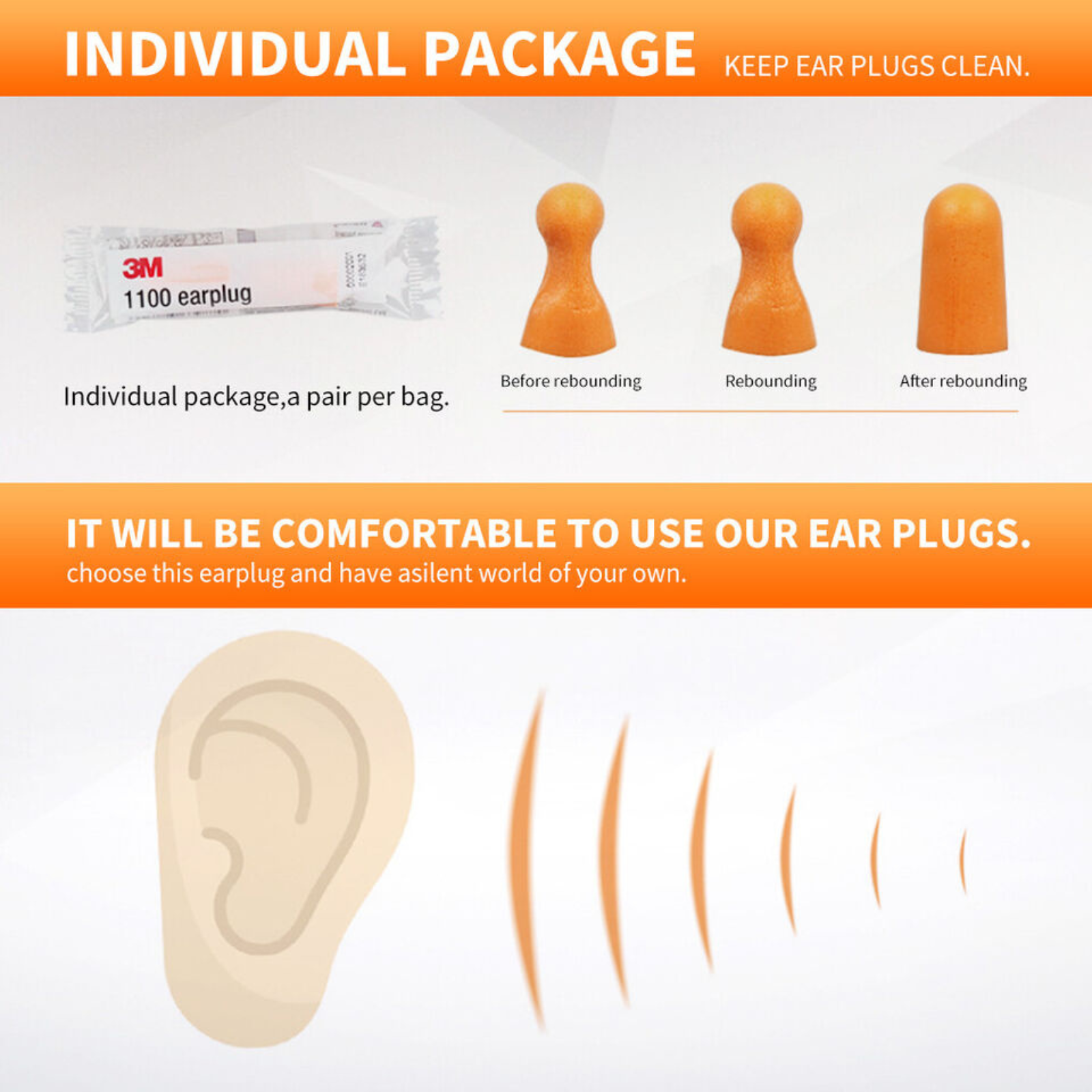 Comfortable Fit: Soft foam earplugs expand to fit various ear canal sizes.