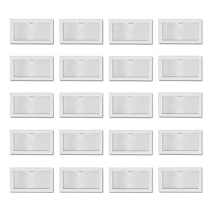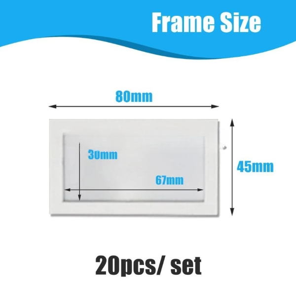 MAGNETIC PHOTO FRAMES: A pack of 20x Clear Magnetic Frames designed to display photos, cards or notes neatly on metal surfaces — perfect for the fridge or locker, easy to insert and reposition.