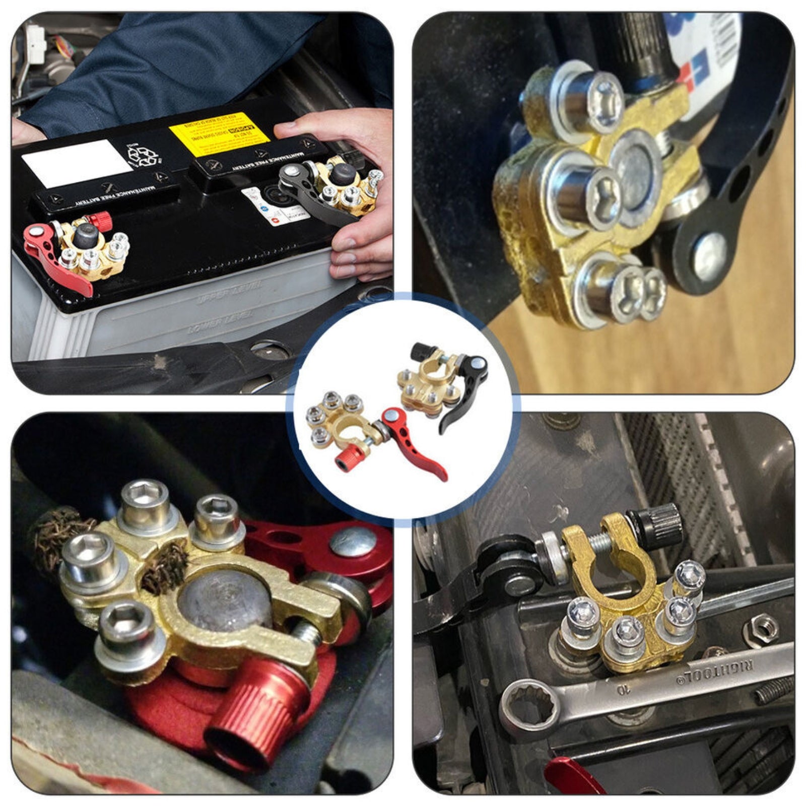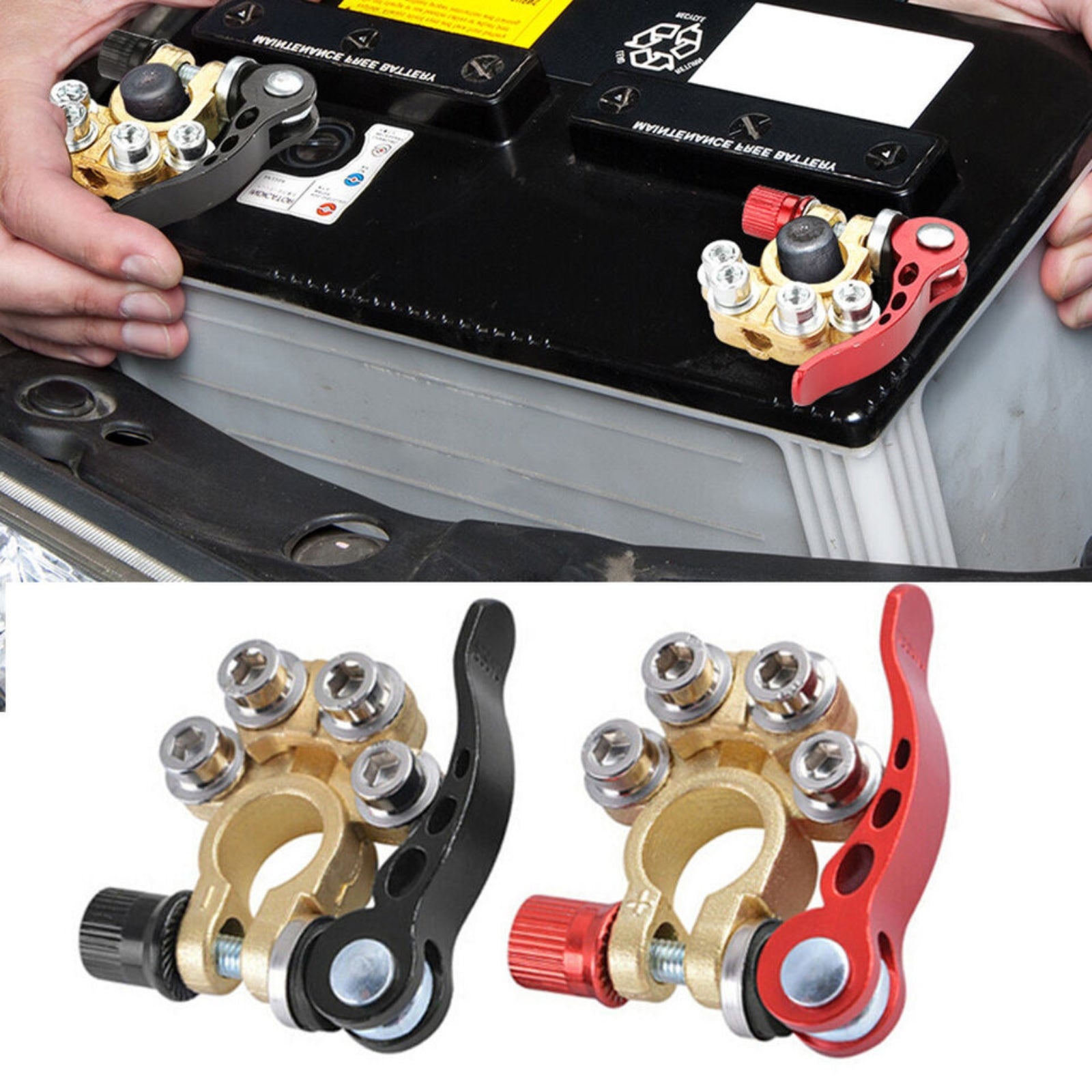 2pcs Car Van Caravan Battery Terminal Connectors Clamp 4 Way Positive Negative