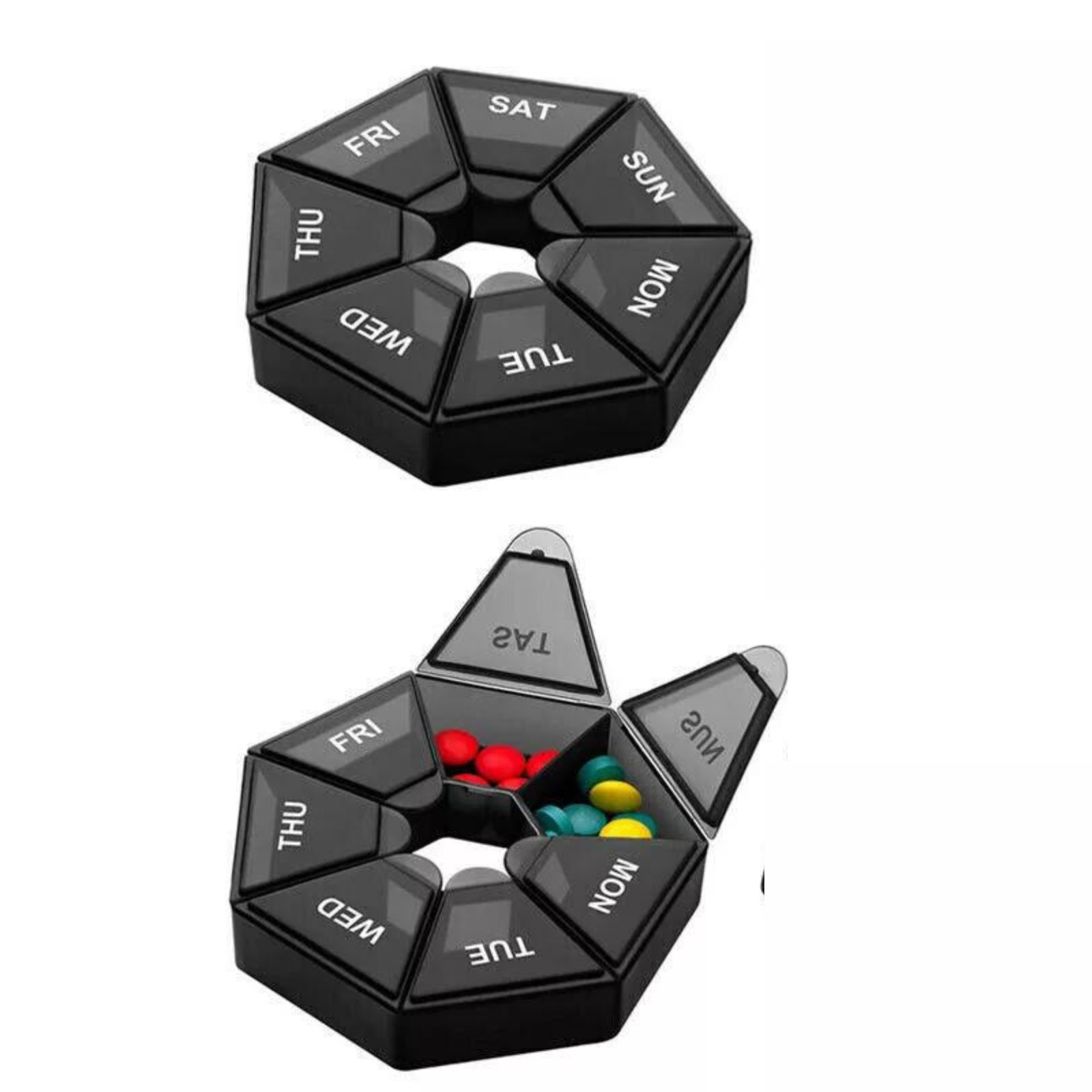 2PCS Dispenser Black Organizer 7Day Pill Box Medicine Storage Tablet Container