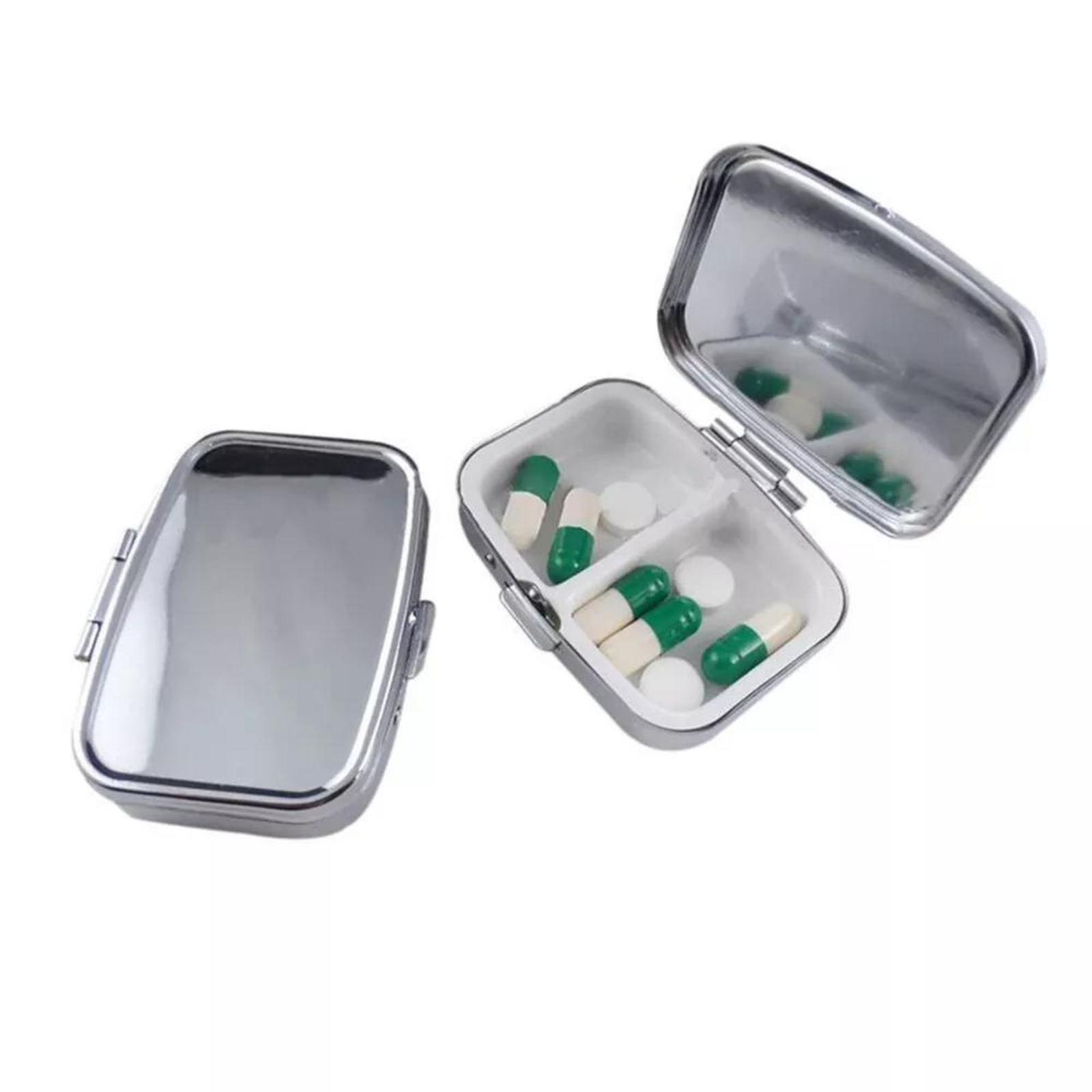 2x Metal Case Container Pill Container Tablet Holder Medicine