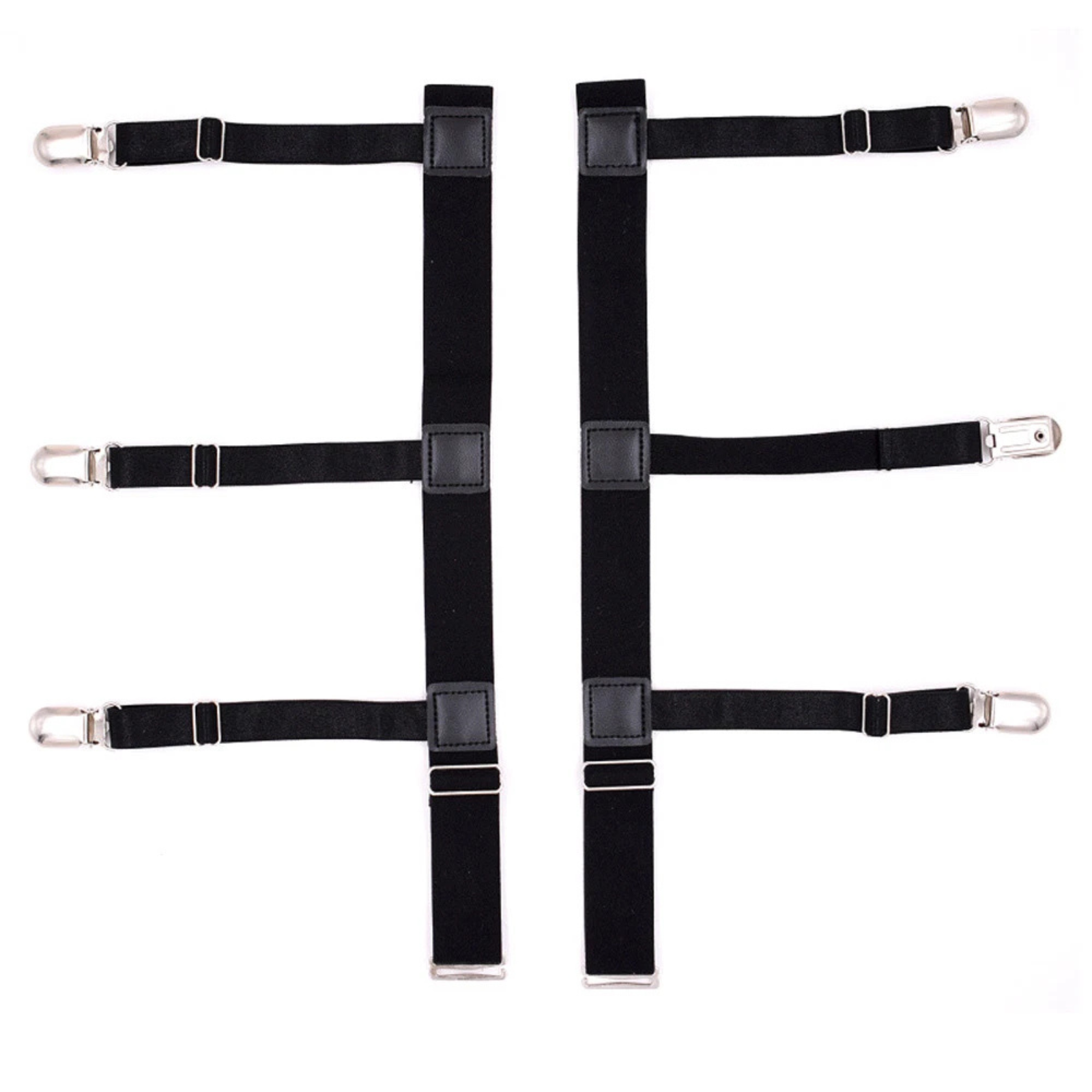 - Buckle Design: 3 buckles per garter for secure shirt hold