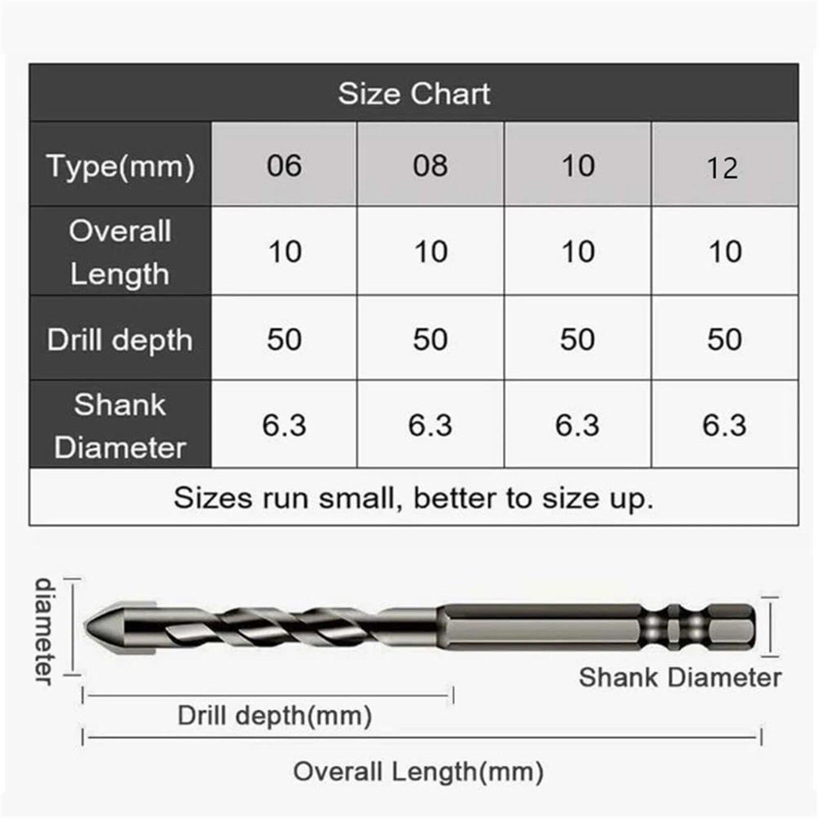 - Application: Wood, Tile, Ceramic, Glass Drilling