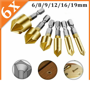 6X Chamfer Countersink Drill Bit Set Deburring Tool for Wood Metal