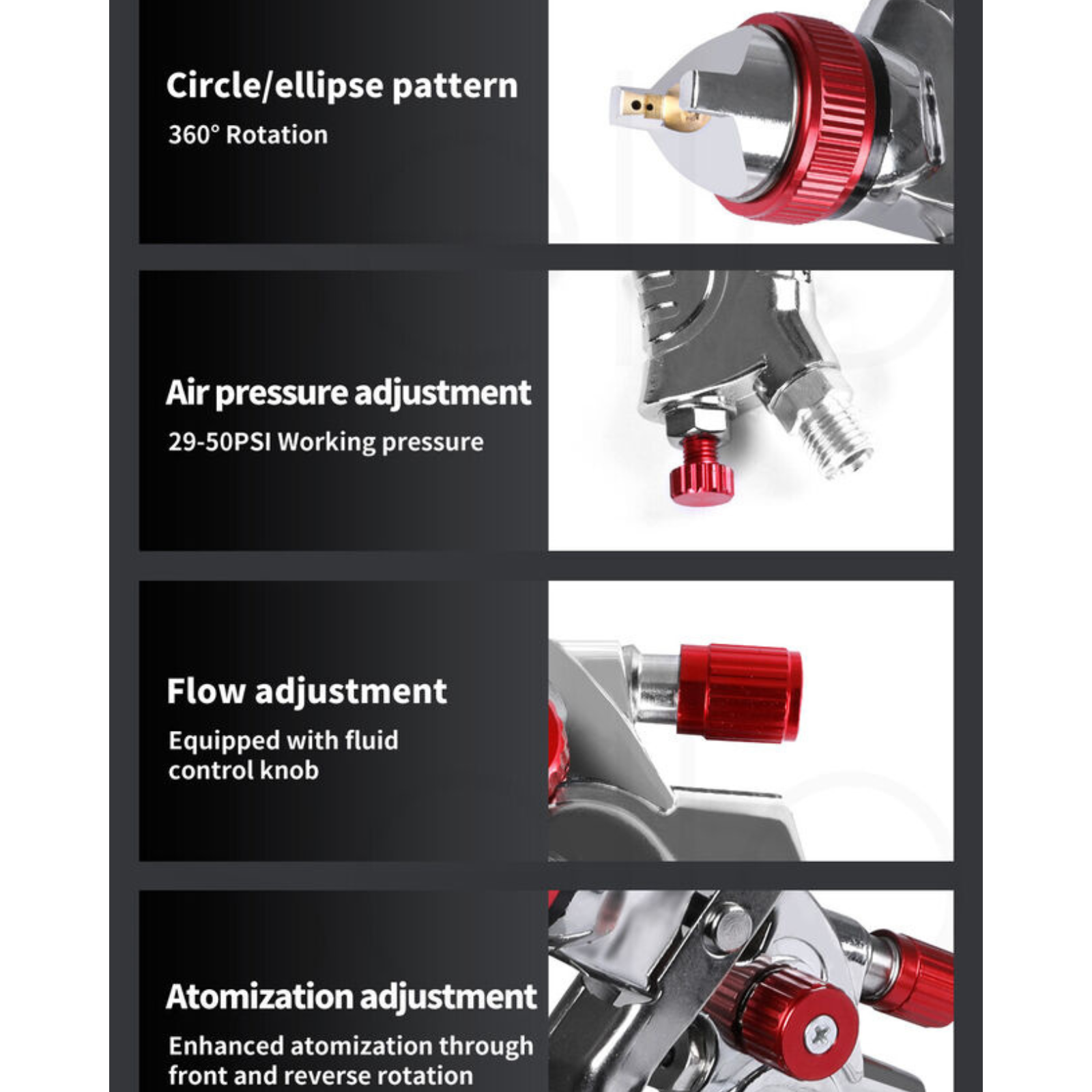- Adjustable Controls: Customize fluid, pattern, and air settings.