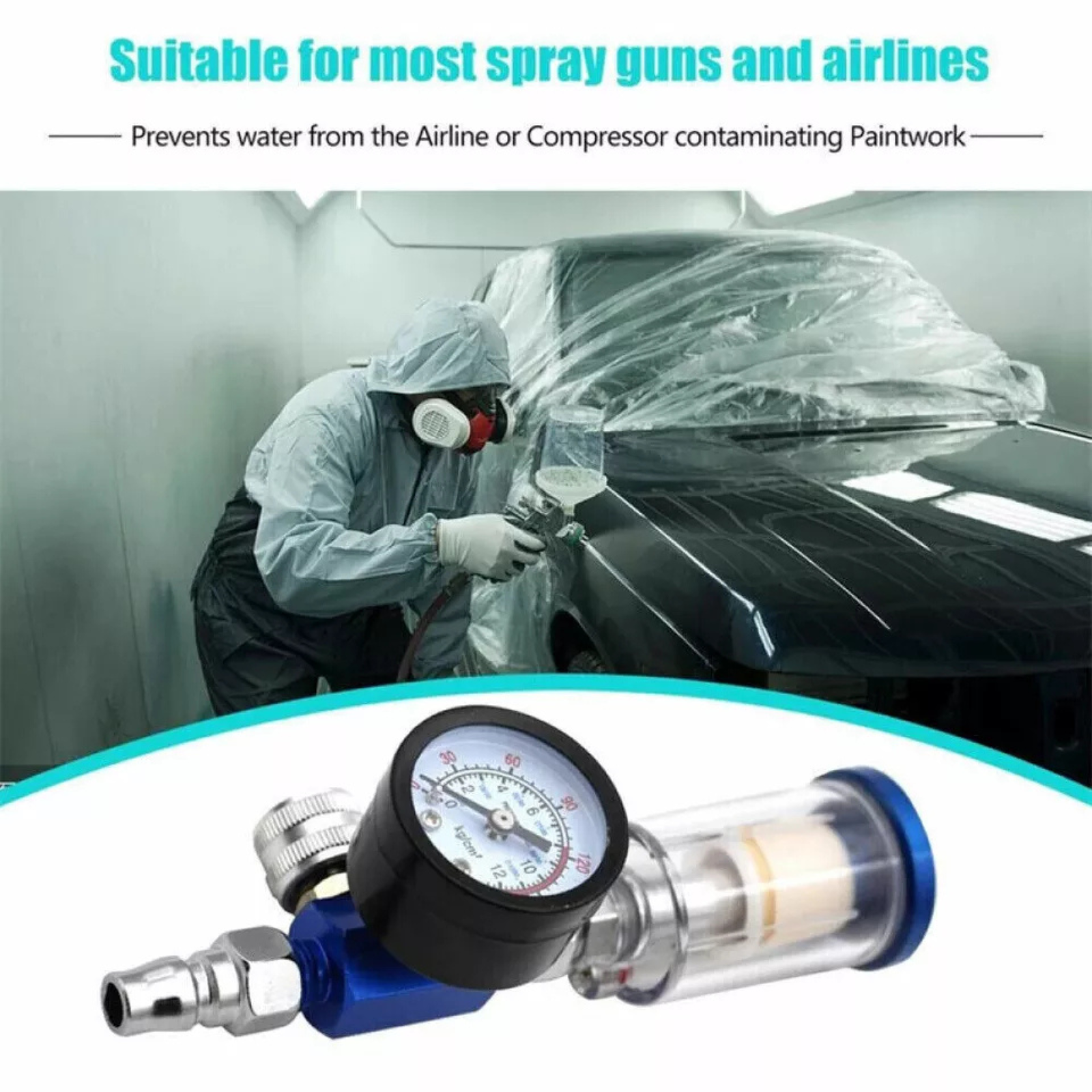PRECISE AIR PRESSURE CONTROL: This 1/4" Spray Gun Air Regulator with gauge ensures accurate and consistent air pressure for your paint applications, enhancing finish quality and reducing overspray.