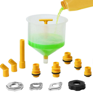 Upgrade your coolant refills with this high-end funnel kit. It features a unique rotary switch to prevent spills and bubbles, and includes a range of components for precise fluid delivery. Ideal for any vehicle, this set ensures efficient and mess-free coolant changes.
