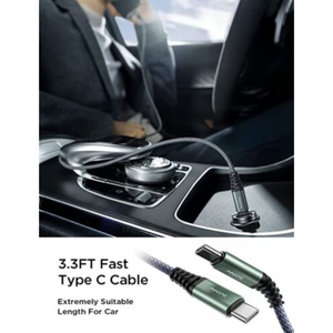 DURABLE USB C-C CABLE: 3.3ft nylon, 60W fast charge.