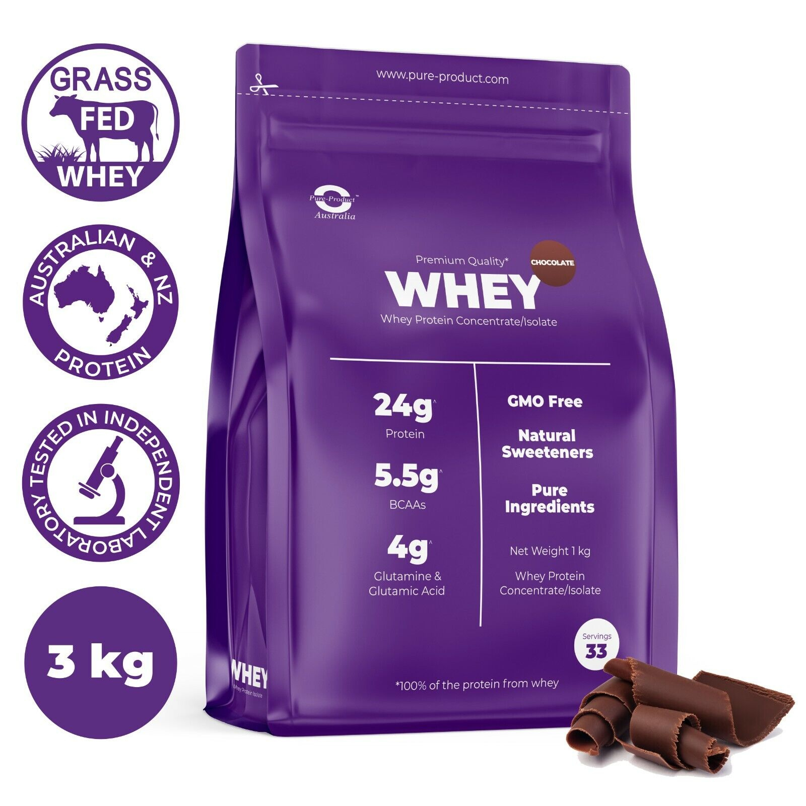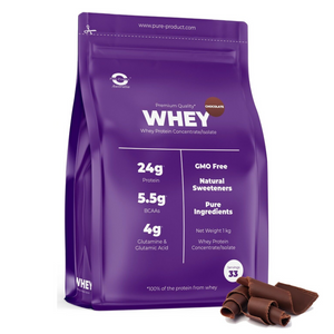 Elevate muscle growth with Whey Protein Isolate & Concentrate sourced from Fonterra. Low-temperature Ultra Filtered, it's the purest option, offering 24g of protein per serving. High in BCAAs, low in sodium, and effortlessly mixable. Achieve fitness goals with Pure Product's commitment to quality.