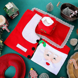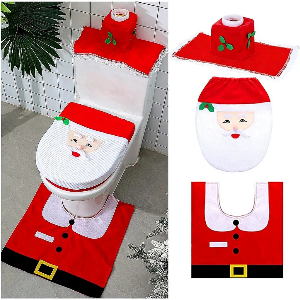Christmas Home Decor Santa Toilet Seat Cover Rug Bathroom Set Decoration
