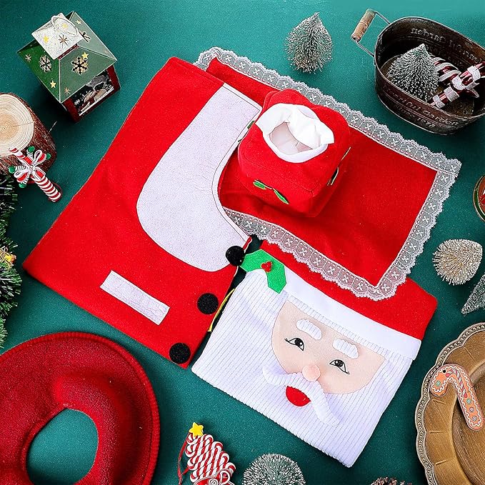 FESTIVE & VIBRANT: Add a touch of Christmas cheer to your home with this delightful Santa-themed Toilet Seat Cover Rug Set. Crafted from soft, comfortable fabric, it instantly brightens your bathroom with a fun and holiday-inspired design.