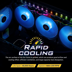 Enhance your PC's cooling and aesthetics with the 3PCS Cooling Fan 12122.5CM Colourful. Featuring vibrant RGB lighting with 18 effects, hydraulic bearing for silent operation, and adjustable fan speeds. Perfect for gamers and enthusiasts alike seeking both performance and style.
