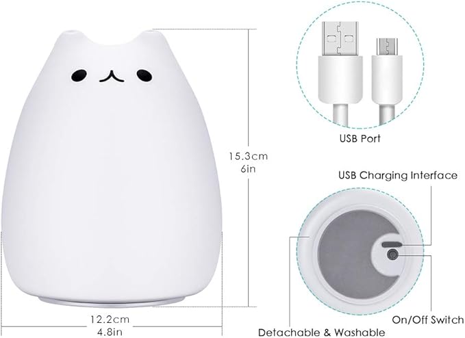 CUTE & FUN DESIGN: The EECOO Cute Cat Lamp is a soft silicone LED night light designed for children. Its adorable cat shape provides a gentle, warm glow that creates a relaxing atmosphere, perfect for bedtime.