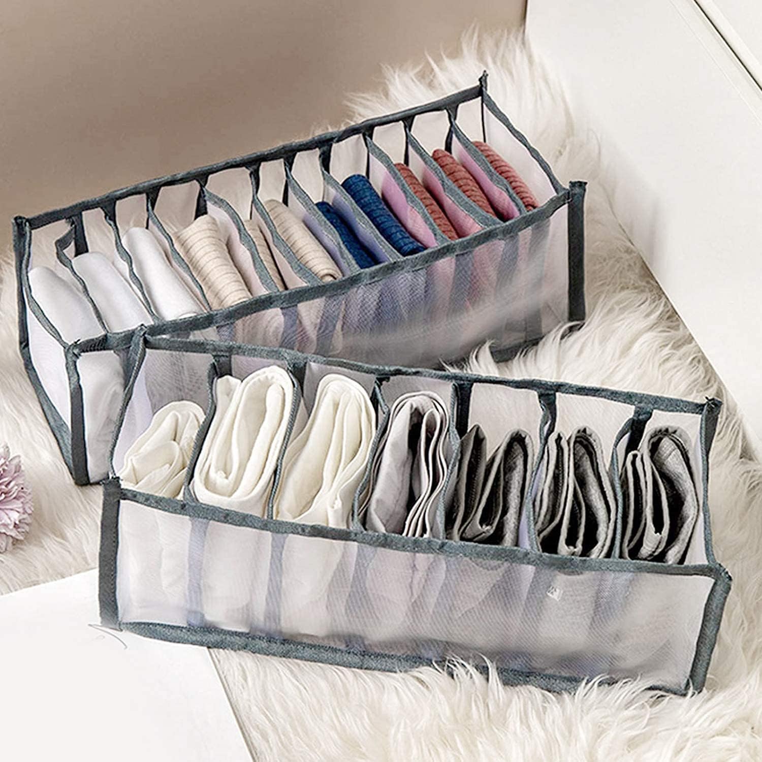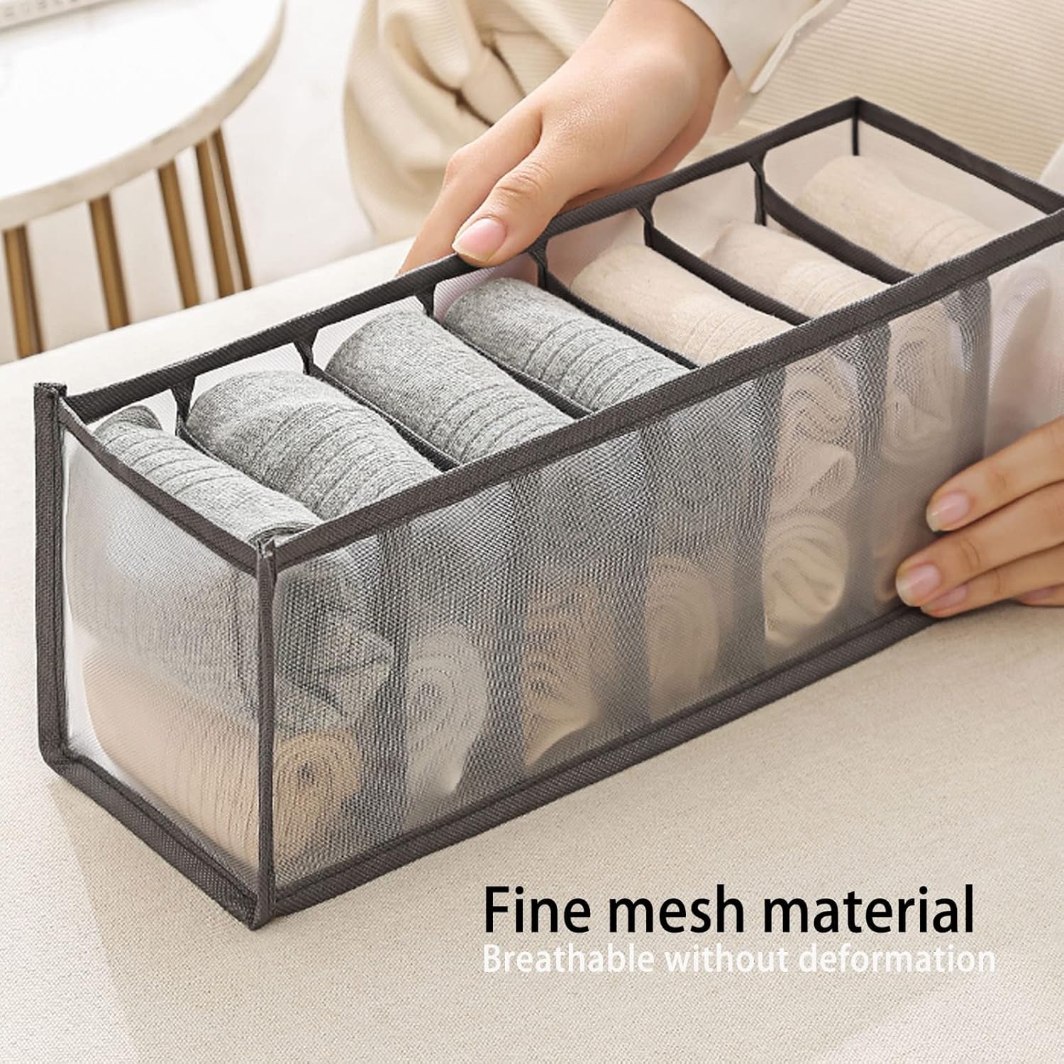 ORGANIZE YOUR SPACE: This 7 Grids Mesh Storage Bag is designed to keep your clothes, jeans, and pants neatly organized in drawers. Its foldable design allows for easy storage and access, making it perfect for maximizing drawer space and maintaining order.