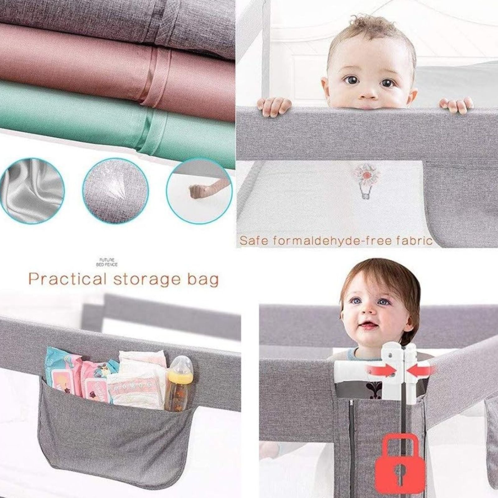 Protect with Ease! Keep your little one safe and secure with the Adjustable Folding Safety Bed Rail. Easy to install and adjust, it provides reliable protection throughout the night, ensuring your peace of mind.