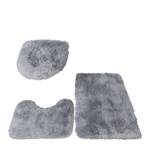 Grey Fluffy Bathroom Mat Set 3x Anti Slip Washable Floor Rugs