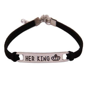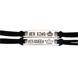 Her King His Queen Leather Stainless Steel Bracelet Couple Friend Bracelet