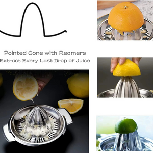 STAINLESS STEEL & EASY TO USE: This manual citrus juicer makes it quick and effortless to extract juice from oranges, lemons, and other fruits. Built with durable stainless steel for long-term use and easy cleaning.