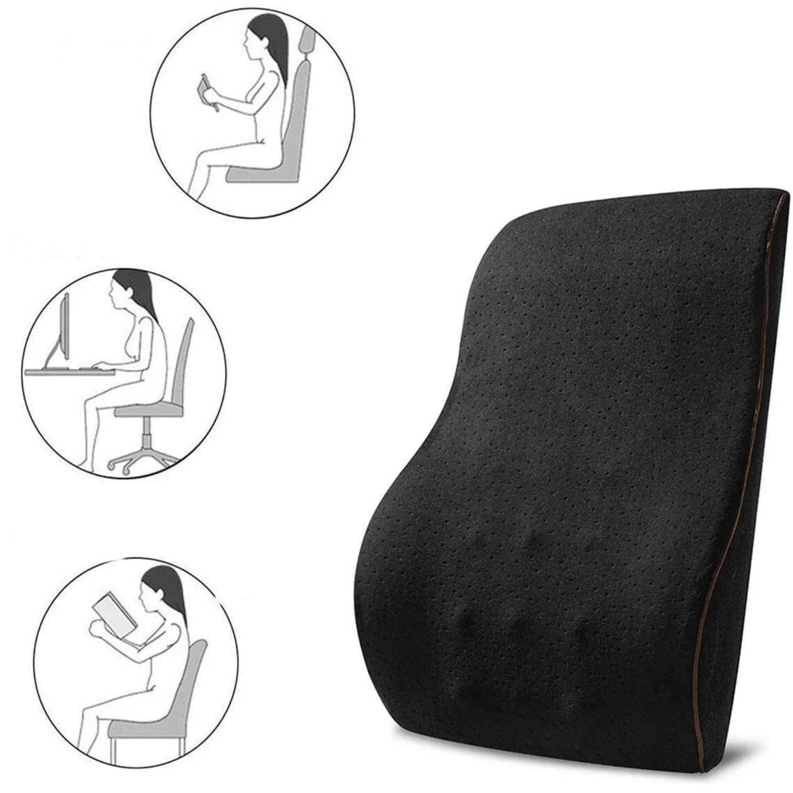 Memory Foam Lumbar Back Support Cushion Black Ergonomic Comfort for Office