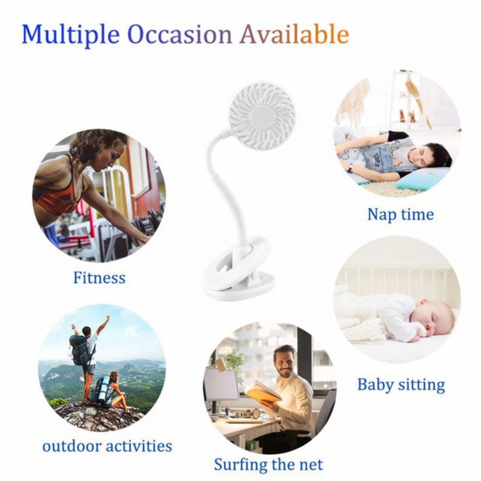 Mini Fan Travel USB Rechargeable Portable 360° Clip On Desk Pram Car Cooling Fan