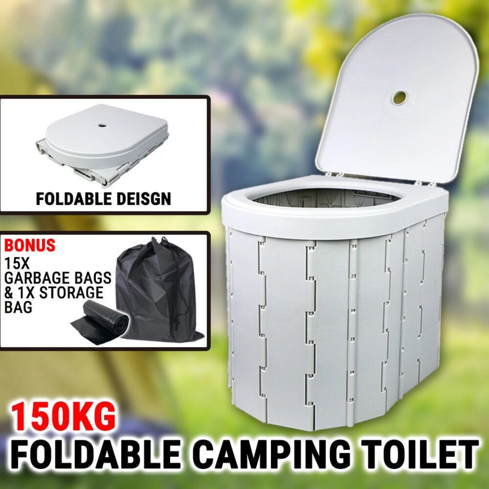 Portable Lid Camping Toilet Foldable Easy-Clean Lightweight Design
