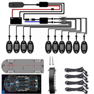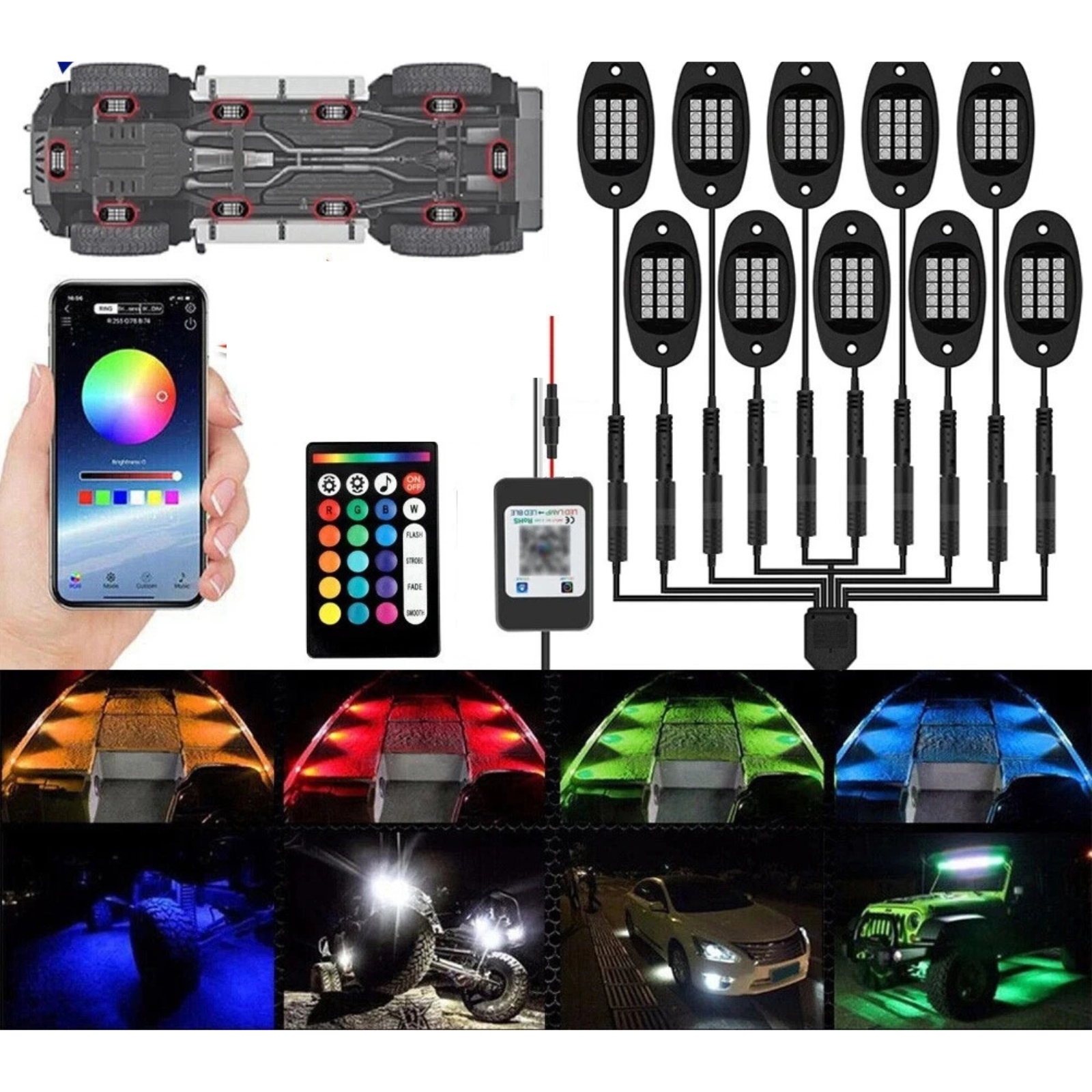 RGB LED Rock Lights 10 Pods Offroad Vehicle Underglow Kit Remote Controlled